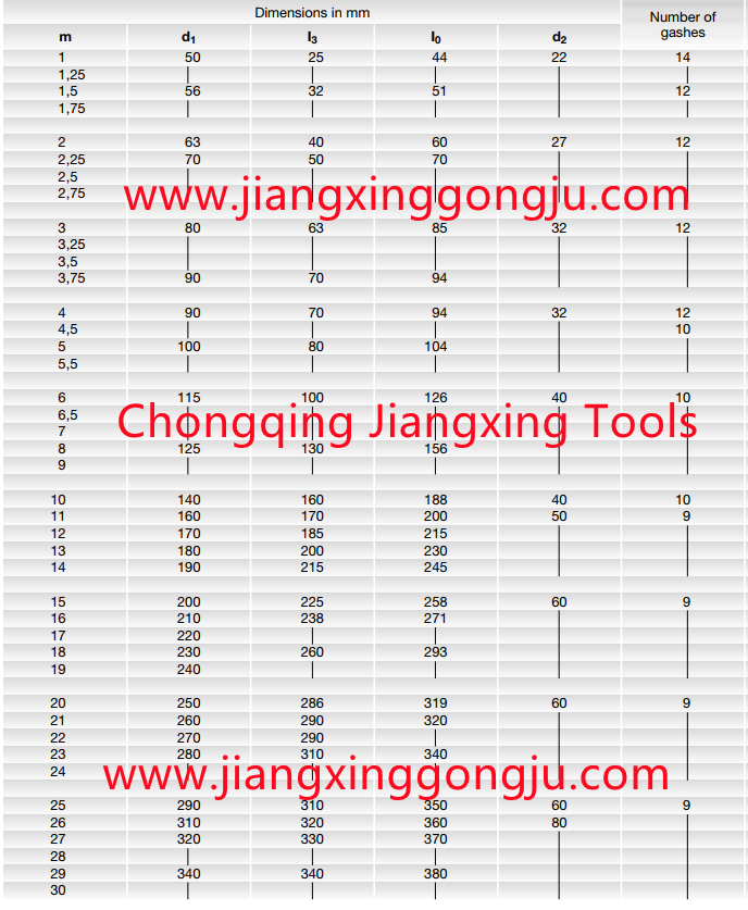 Common sizes for module gear hobber cutter with relief ground DIN 8002 A as following;