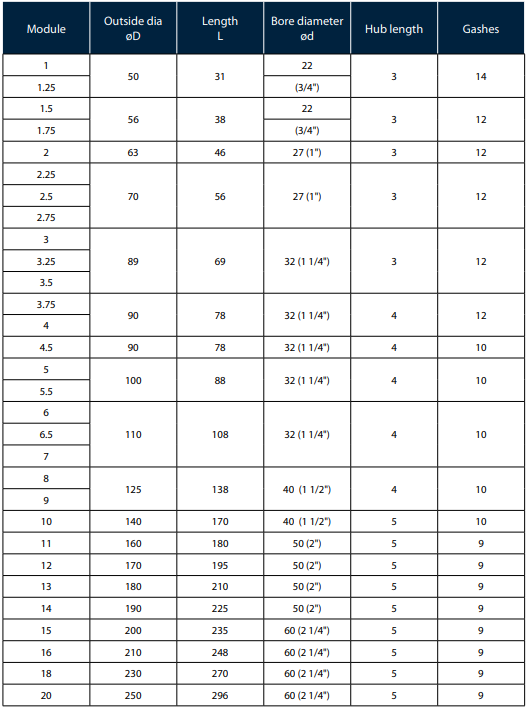 for spur and helical gears to module pitch